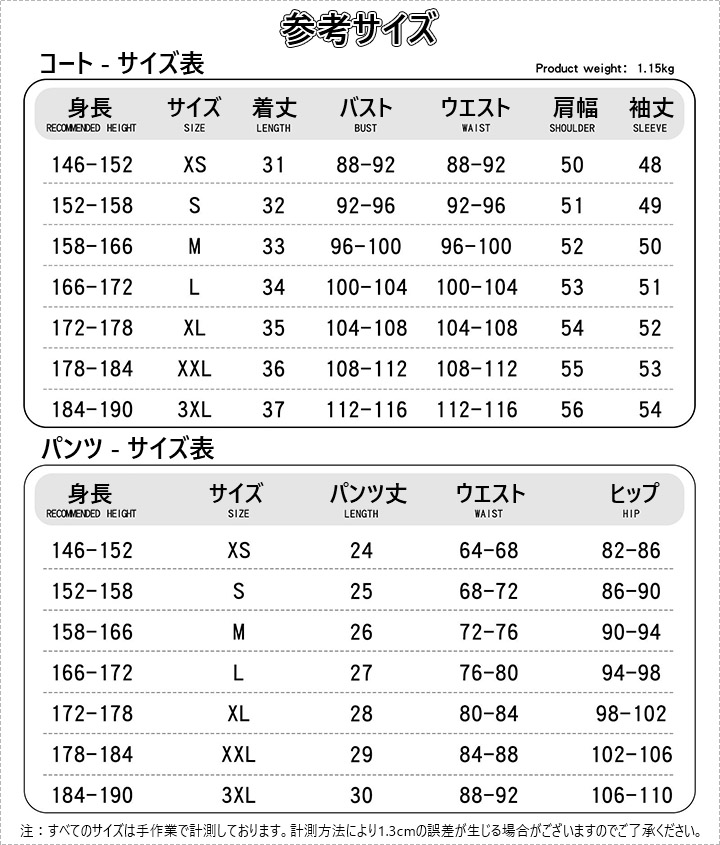 カスタマイズ寸法:性別、身長、肩幅、バスト、ウエスト、ヒップ