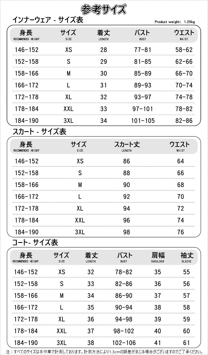 カスタマイズ寸法:性別、身長、肩幅、バスト、ウエスト、ヒップ